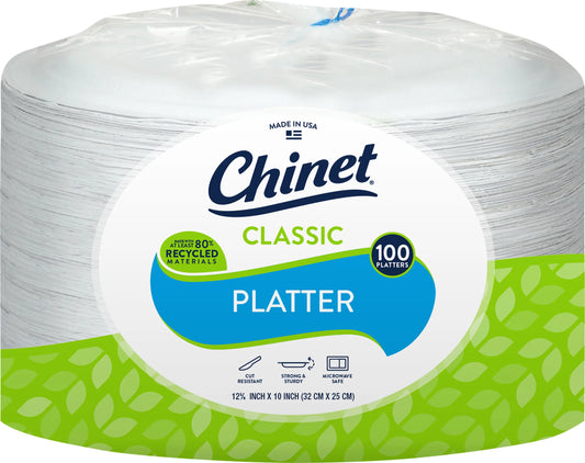 Chinet Classic White Oval Platter Plates, 12.625" x 10" (100 ct.)
