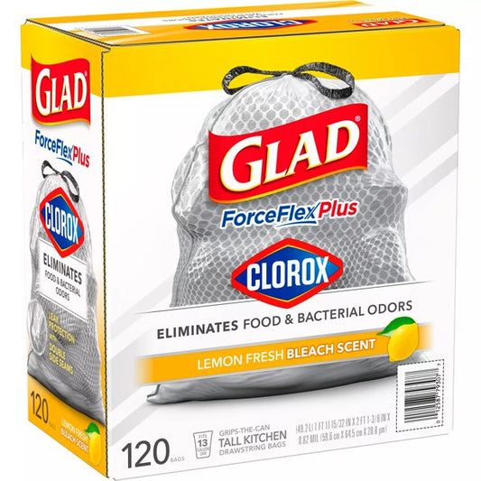 Glad ForceFlex Plus Tall Kitchen Trash Bags – With Clorox, Lemon Fresh Bleach Scent (13 gal., 120 ct.)