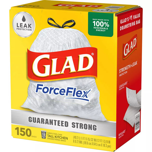 Glad 13-Gal. Tall Kitchen Drawstring Plastic Trash Bags, 150 ct. - White