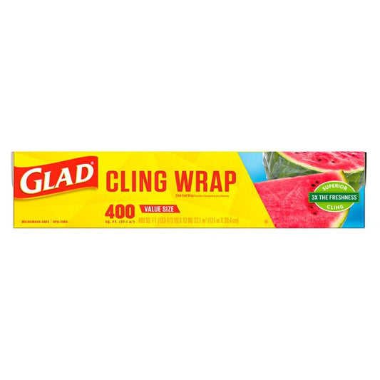 Glad Cling ‘N Seal Clear Plastic Food Wrap (400 sq. ft./roll, 2 rolls)