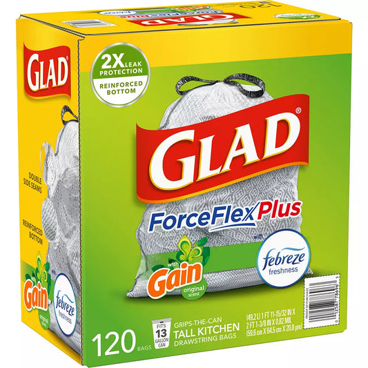 Glad ForceFlex 13-Gal. Tall Kitchen Bags with Gain Odorshield, 120 ct.