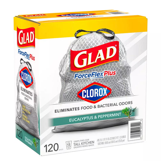 Glad ForceFlexPlus with Clorox Trash Bags, Eucalyptus, and Peppermint, 120 ct./13 gal.