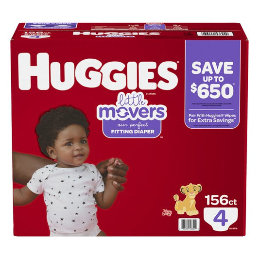 Huggies Little Movers Diapers, Size 4 - 22-37 Pounds (156 Count)