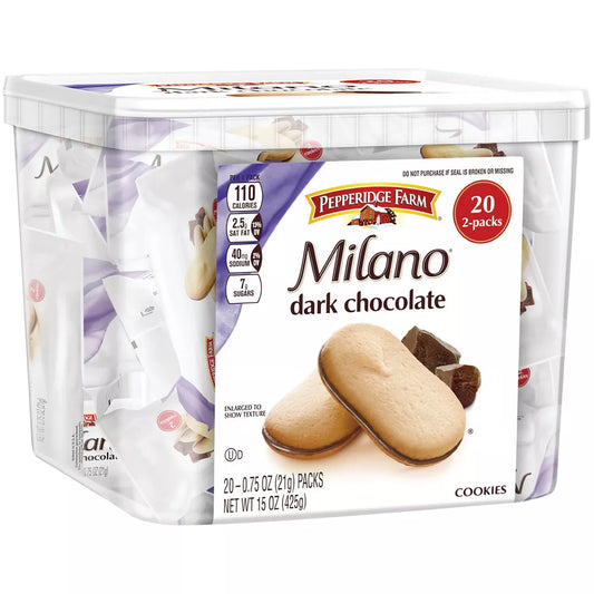 Pepperidge Farm Dark Chocolate Milano Cookies Multi-Pack Tub, 20 ct., 15 oz.