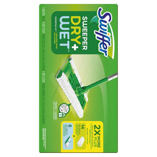 Swiffer Sweeper Dry + Wet Sweeping Kit (1 Sweeper, 14 Dry Cloths, 6 Wet Cloths)